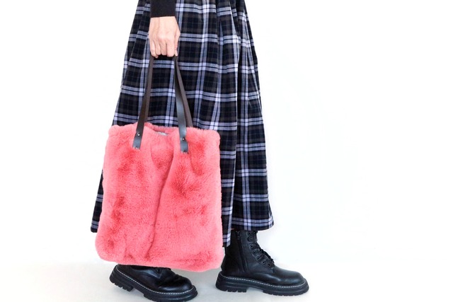 もふっと幸せ トートバッグ ピンク フェイクファー