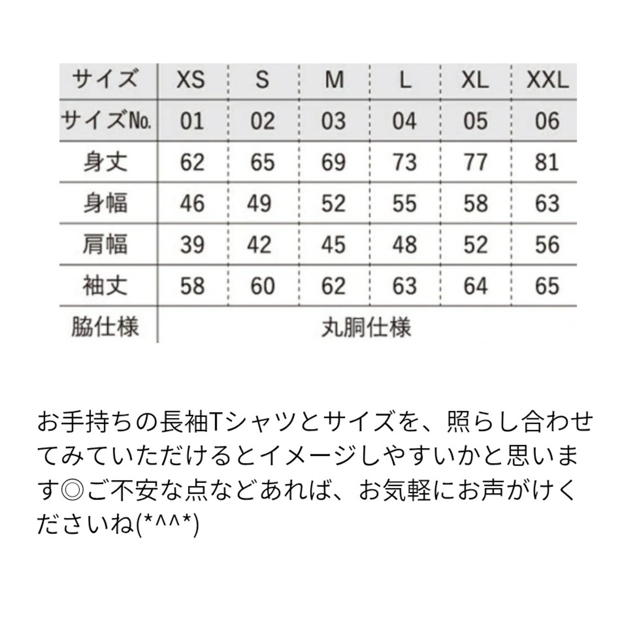 お手持ちの長袖Tシャツとサイズを照らし合わせてみていただけると、イメージしやすいかと思います◎