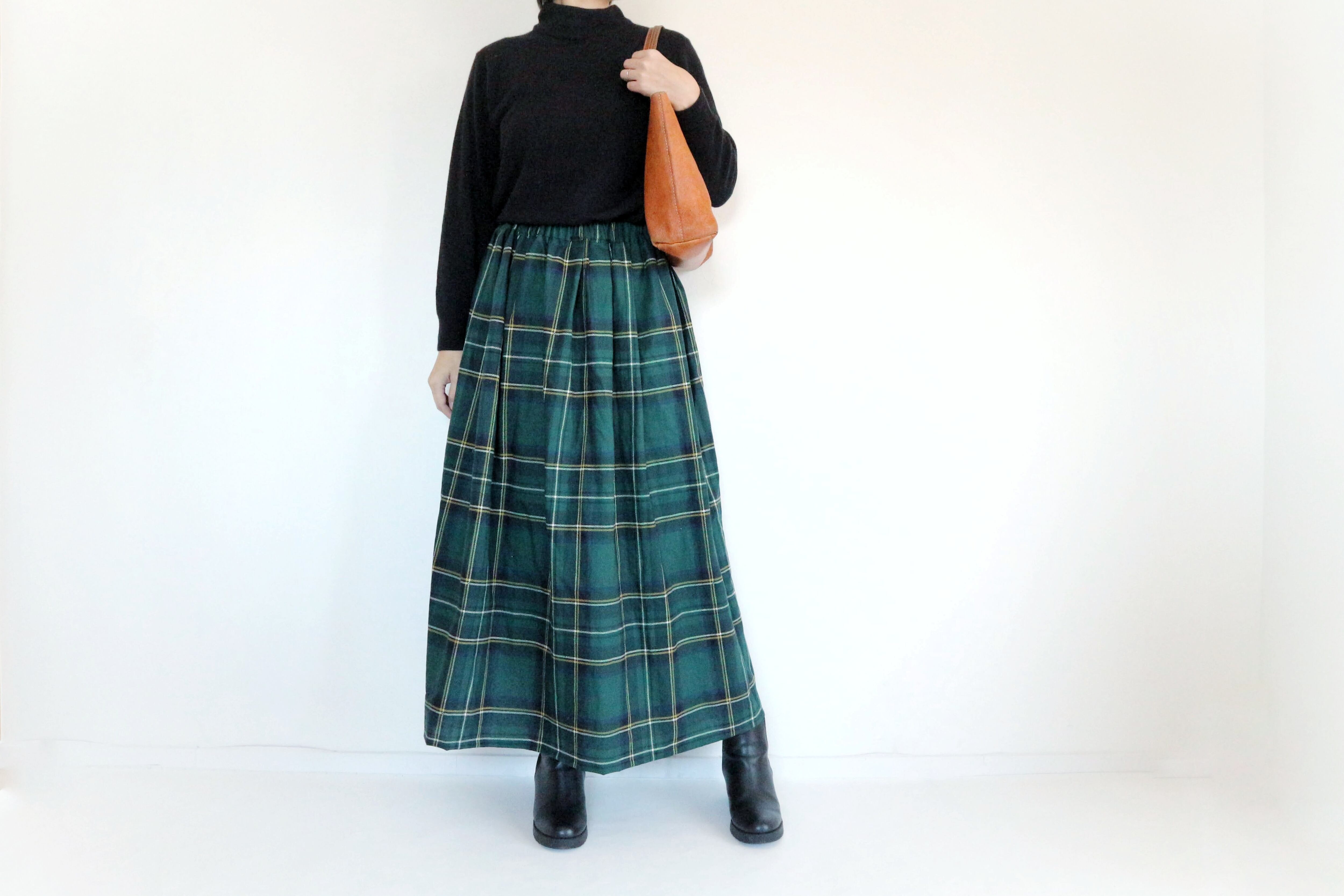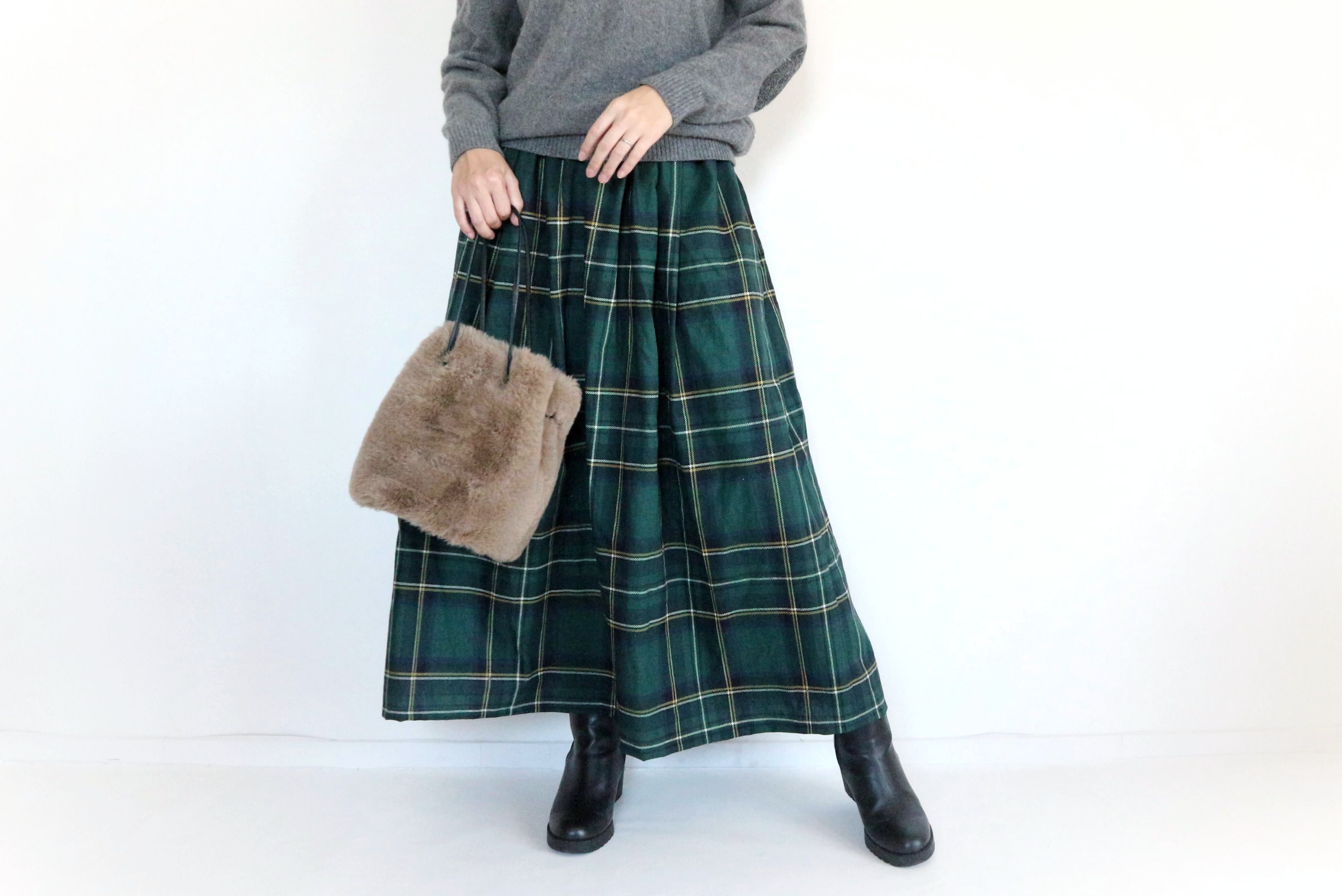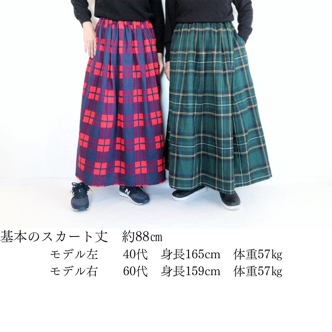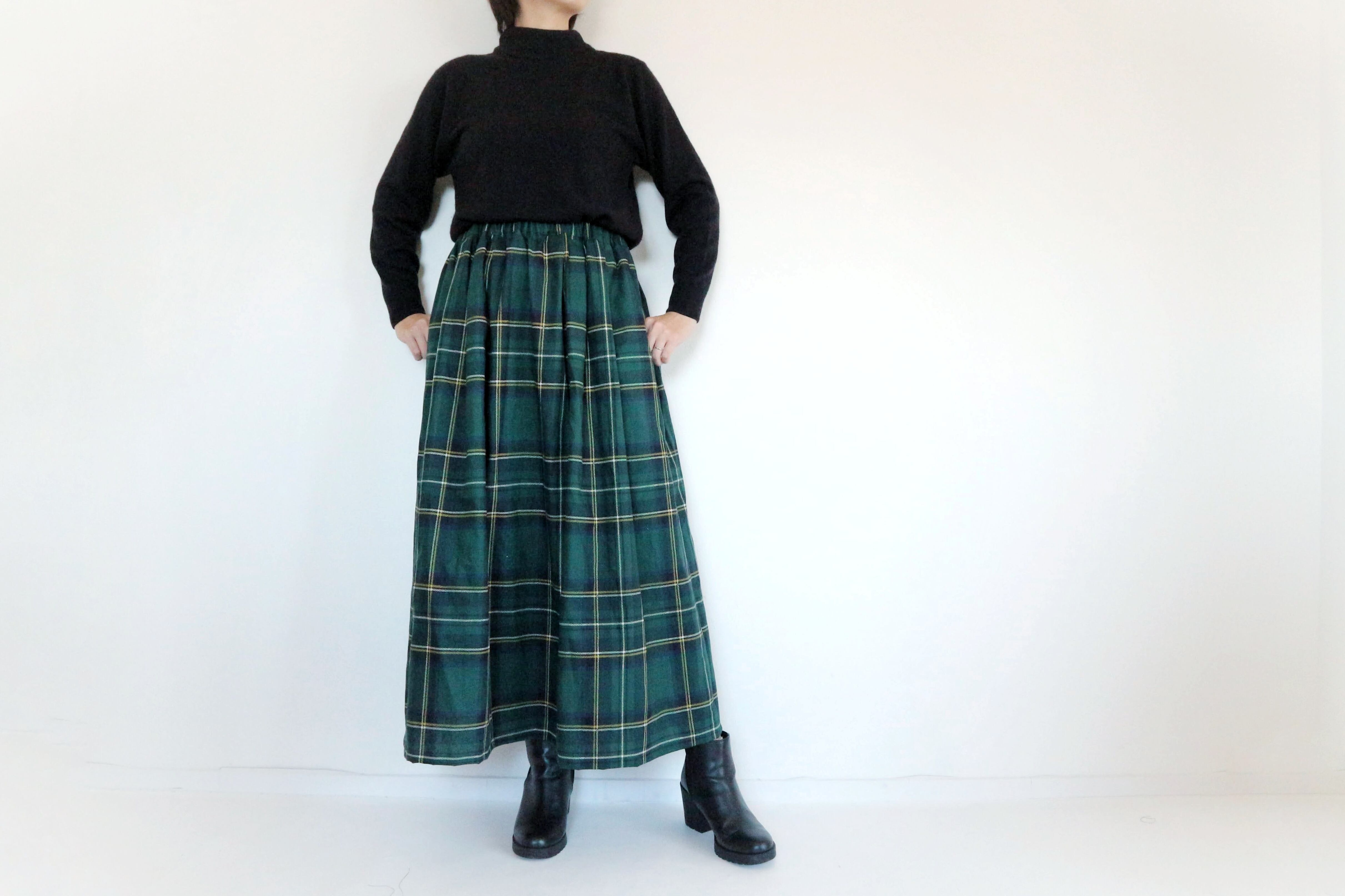 【受注】わたしの定番 チェックスカート グリーン