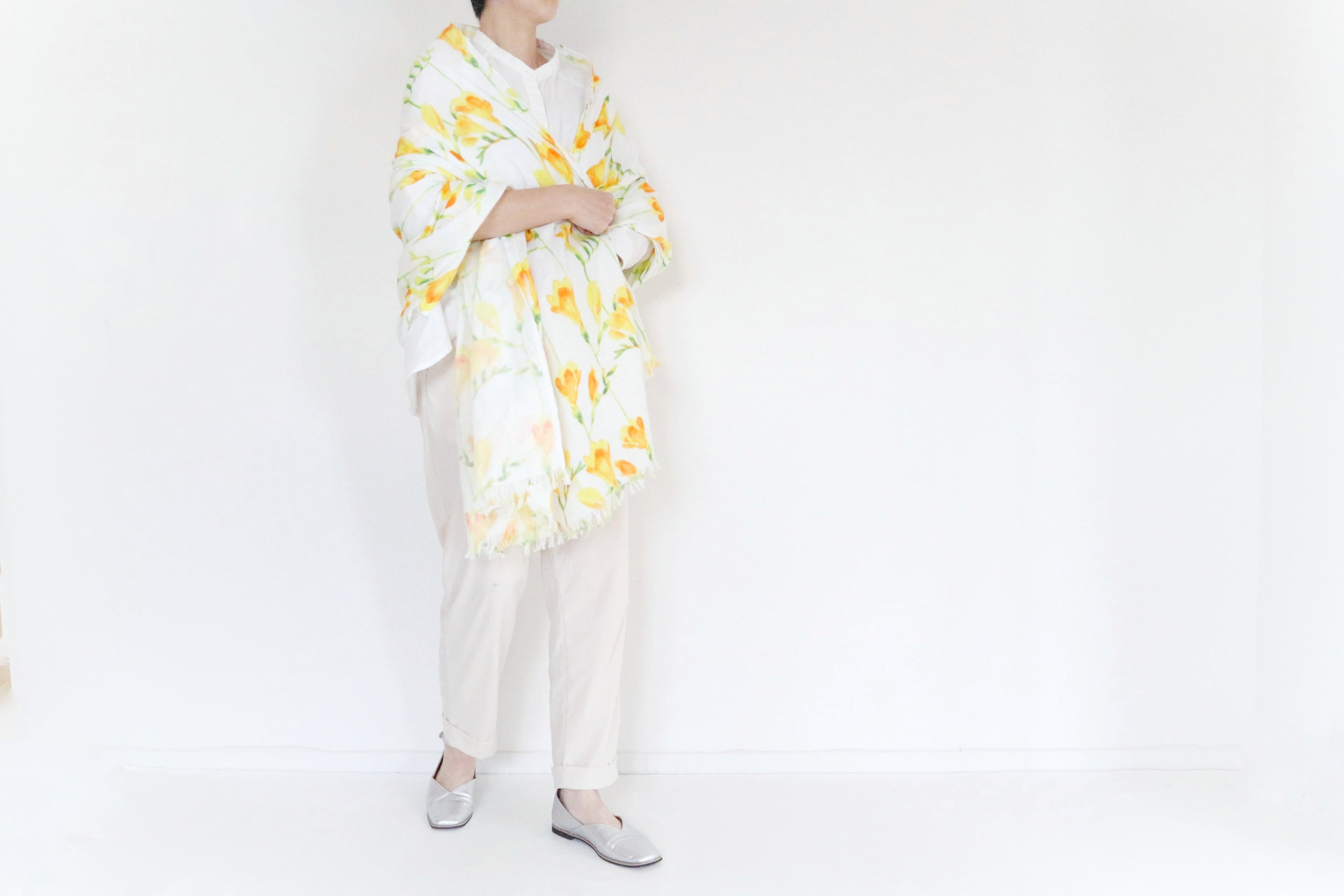 ストールまき方のポイントは、ストールに空気を含ませること!